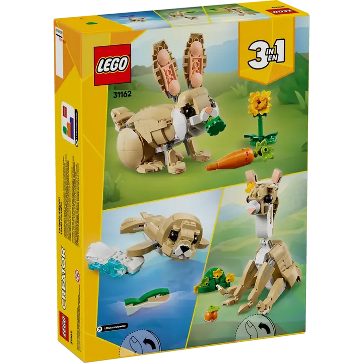 - 3 rebuildable animal playsets for kids in 1 box – LEGO® Creator Cute Bunny lets girls and boys aged 8 and up build and rebuild 3 different animal figures using the same bricks